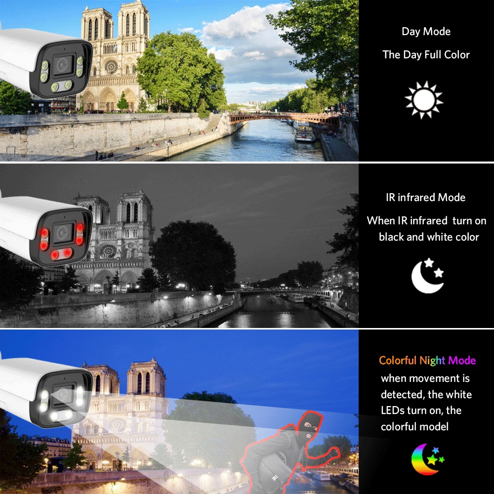 Smart Dual Illumination: Effortlessly switch between Full-color and IR modes for optimal surveillance.